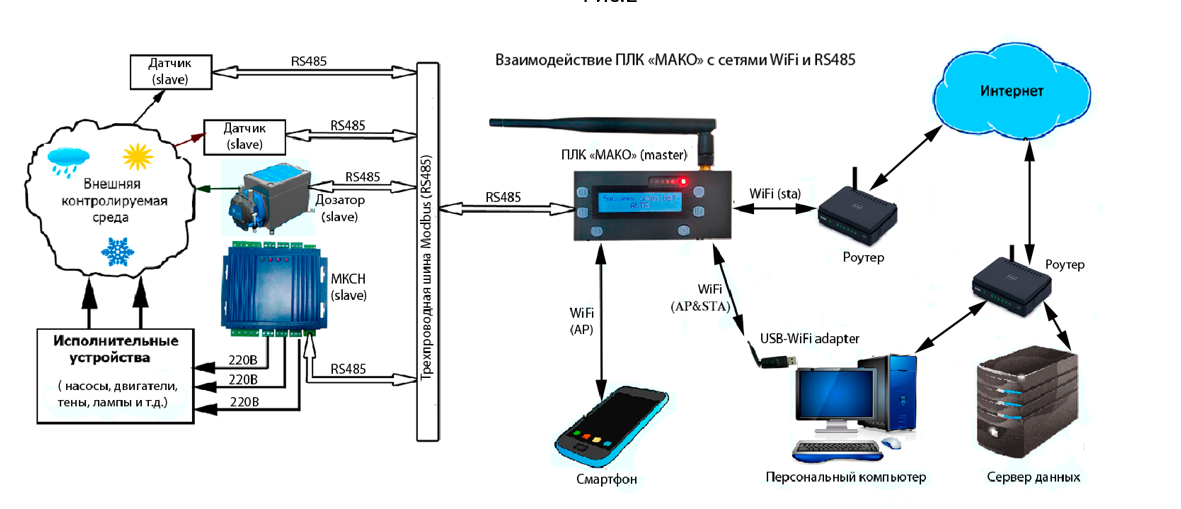 Интерфейсы: WiFi (режимы Station, AP, Mixed), RS-485 (через miniUSB)